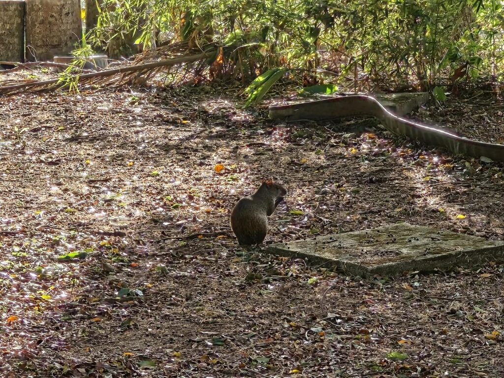 W Ciudad de Panamá znajduje się też prawdziwy las tropikalny, spełniający rolę czegoś pomiędzy parkiem a ZOO. Do spacerów udostępniona jest wyłącznie niewielka jego część, ale i tak wizyta tutaj daje okazję do zobaczenia całej masy ciekawych rzeczy. Jak informuje oficjalna strona, na terenie parku można spotkać ponad 600 gatunków roślin oraz niewiele mniejszą liczbę zwierząt (w tym 39 rodzajów węży). Tych ostatnich akurat udało nam się uniknąć, ale znaleźliśmy za to kolejne dwa leniwce, tym razem faktycznie ceniące sobie odpoczynek. Tak po prawdzie, to za każdym razem zostały nam one przez kogoś pokazane, bo zauważenie tego nieruchomego zwierzęcia patrząc pod słońce przekraczało zdolności naszych soczewek korekcyjnych. Z ich trybem życia ma to sens, bo miliony lat ewolucji przystosowały je raczej do unikania wzroku drapieżników, niż do pozowania do zdjęć na Instagrama. Idąc sobie po parku spotkaliśmy też kolejne aguti, jeszcze więcej ptaków wszystkich kształtów i kolorów, a na sam koniec przebiegło nam drogę… coś. Tym czymś okazał się później ostronos białonosy, noszący po hiszpańsku wdzięczną nazwę “gato solo”. Na tym etapie myślałem, że bardziej egzotycznego zwierzęcia już w Panamie nie zobaczymy, ale dalsza wycieczka po kraju jeszcze kilka razy kazała mi zrewidować moje poglądy w tym zakresie.