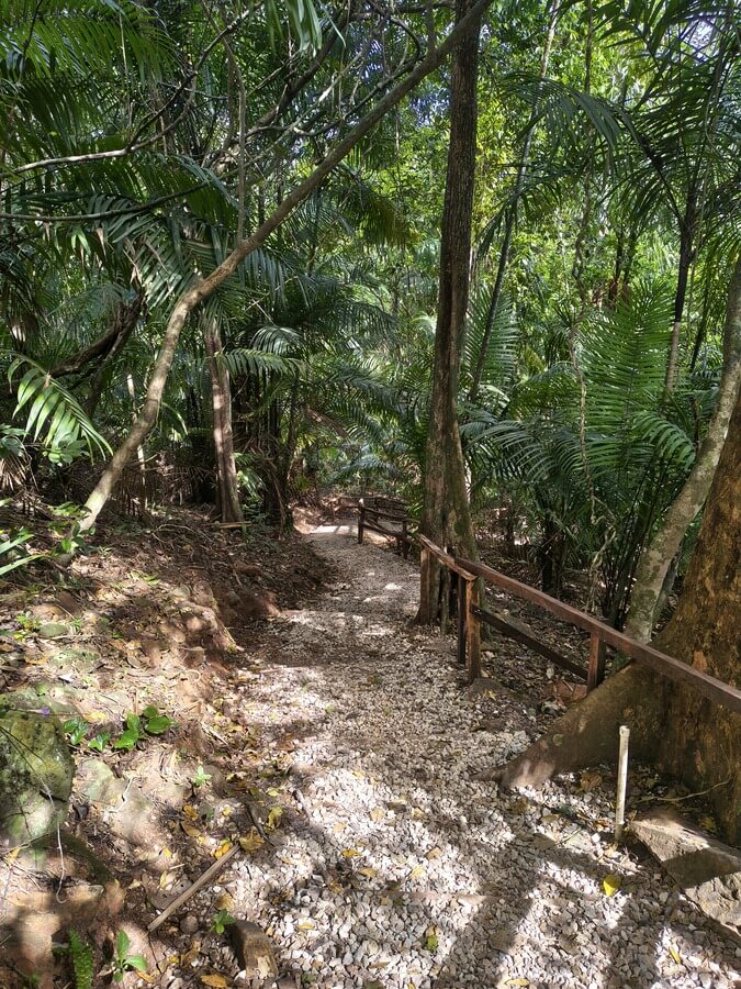 Na szczyt prowadzi zadbana ścieżka, której pokonanie zajmuje mniej więcej pół godziny. Jest to czas zupełnie teoretyczny, bo po drodze nie da się nie zrobić jednego albo i kilku przystanków na podziwianie miejscowej flory albo fauny. Podczas krótkiego spaceru na tej trasie spotkaliśmy między innymi aguti, kilka dziwnych ptaków, a na sam koniec pierwszego w naszym życiu leniwca. Wspomniany osobnik nie wydawał się przy tym wcale flegmatyczny, bo z werwą zasuwał po okolicznych drzewach. Jak się okazało, wzbudził swoją obecnością duże poruszenie również wśród miejscowych, a my spędziliśmy pewnie z pół godziny patrząc się na tego dalekiego krewnego mrówkojadów. A kiedy chwilę później pojawiło się w okolicy jeszcze stado tukanów, to już w ogóle nie wiedzieliśmy, na czym skupić wzrok. Szczęśliwie jeszcze przed wyjazdem zainwestowaliśmy w najprostszą lornetkę, która przydała się nam niezliczoną liczbę razy podczas całej podróży po Panamie.