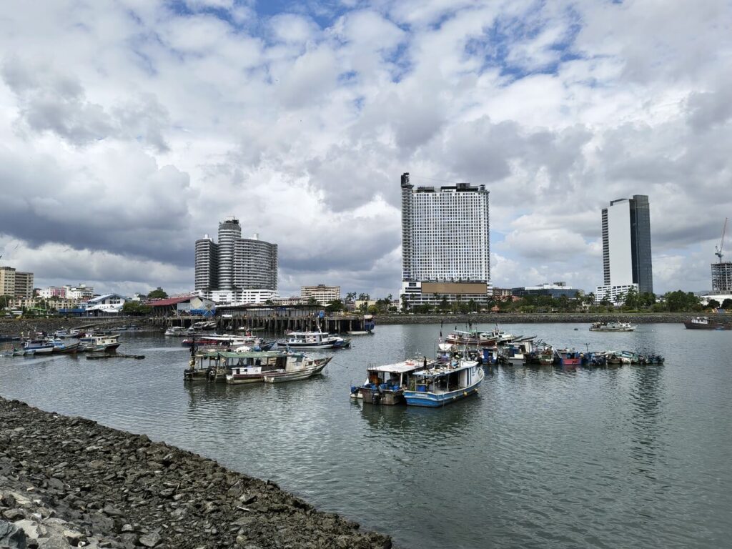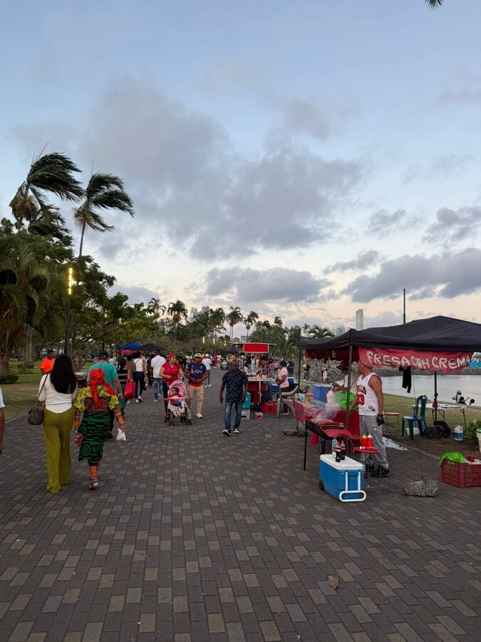 Spacer z targu rybnego w kierunku centrum jest o tyle przyjemny, że prowadzi przez dobrze utrzymany deptak wzdłuż brzegu morza. Po zachodzie słońca pełno na nim sportowców, straganiarzy i … szopów praczy, które tylko czekają na jakieś resztki od miejscowych albo od turystów. Idąc w tę stronę można podziwiać też całą kolekcję panamskich wieżowców, na dachach których mieszczą się modne kluby i restauracje. Patrząc na nie oraz mijając oblegane publiczne boiska do kosza albo korty do padla wręcz trudno uwierzyć, że dwie stacje metra dalej po horyzont ciągną się dzielnice lepianek.